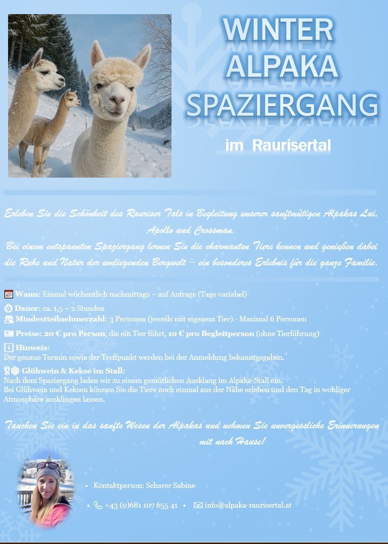 🦙 1 Alpaka (max. 2 Personen): € 20 / Pers.